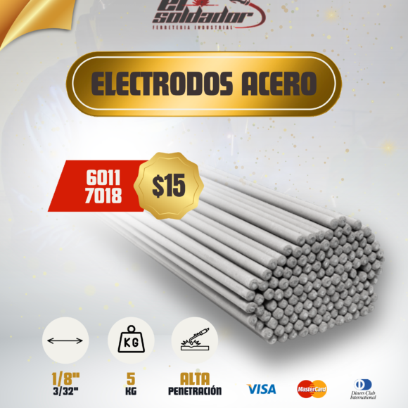 Varillas metálicas recubiertas que conducen la corriente eléctrica desde la máquina de soldadura hacia el metal base. Rendimiento profesional, ideal para trabajos de alta penetración.